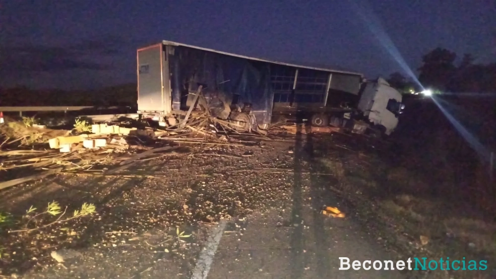 Según los primeros testimonios, el vehículo articulado se desvió bruscamente hacia la derecha, atravesó el arcén y quedó atravesado, impidiendo completamente la incorporación a la autovía. En la zona pueden observarse importantes daños materiales y la carretera ocupada por restos de madera y otros materiales desprendidos del remolque.