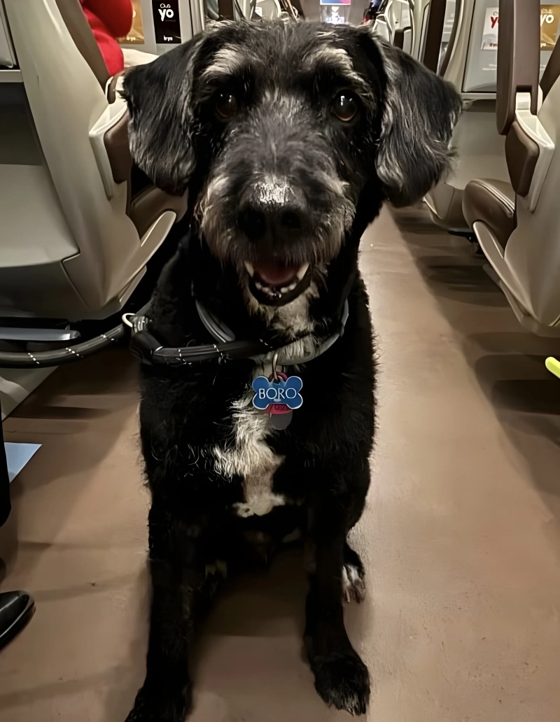 Boro viajaba en el tren Iryo que cubría la línea Málaga-Madrid junto a Ana y su hermana, ambas naturales de Málaga y residentes en Madrid, que se desplazaban a su ciudad natal para pasar unos días con su familia. Tras el accidente, el perro fue visto por última vez cerca de las vías, momento a partir del cual se perdió su rastro.