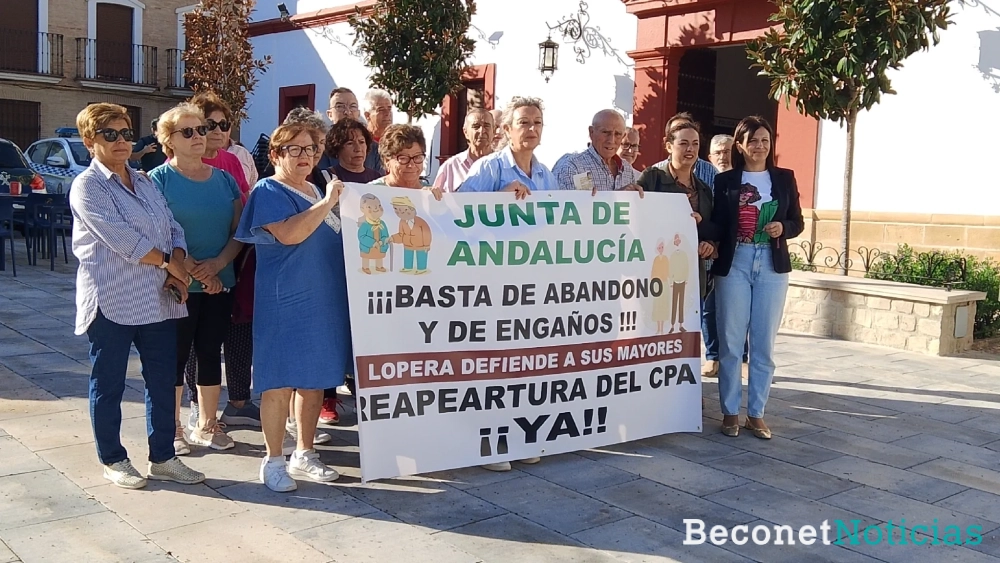 Usuarios del Centro de Participación Activa (CPA) de Lopera y representantes municipales se han manifestado para reclamar a la Junta de Andalucía una respuesta clara sobre el futuro del centro, cerrado desde hace casi 500 días (16 meses) por problemas estructurales.