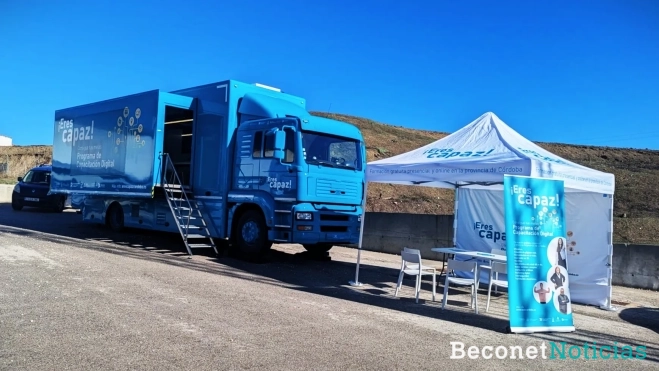 La brecha digital continúa siendo uno de los principales retos en los municipios medianos y pequeños de Córdoba. Para combatirla, la Diputación ha puesto en marcha la oficina móvil del programa Eres Capaz, un camión equipado como aula tecnológica que la pasada semana hizo parada en Bujalance (martes), Cañete de las Torres (miércoles) y Montoro (jueves), ofreciendo asesoramiento directo y matriculación en cursos gratuitos de formación digital.