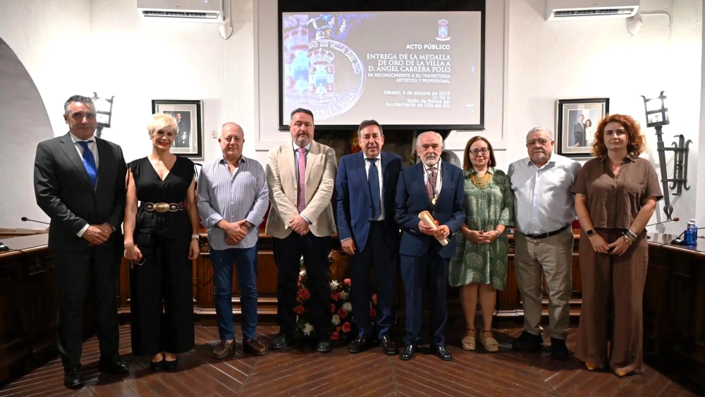 El Salón de Plenos del Ayuntamiento de Villa del Río acogió en la noche del sábado el acto de entrega de la Medalla de Oro de la Villa al pintor Ángel Cabrera Polo, en reconocimiento a su valiosa aportación al mundo del arte y su estrecha vinculación con la vida cultural de la localidad.