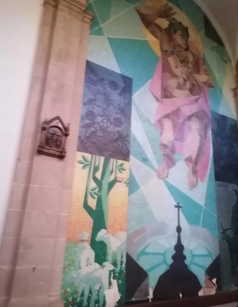 Un mural en riesgo dentro de un espacio religioso