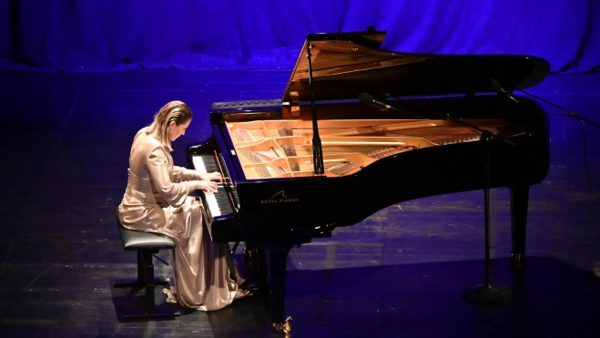 A continuación, la pianista abordó obras de Dia Succari y del repertorio español con piezas de Isaac Albéniz, entre ellas Zambra granadina, El Corpus Christi en Sevilla y Córdoba.