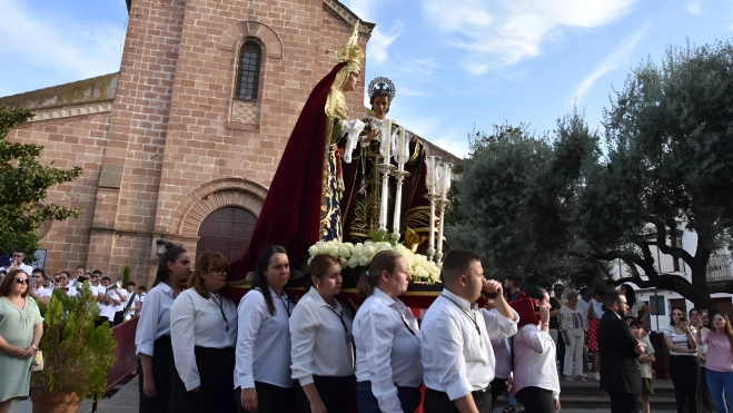 El cortejo partió desde la Iglesia de la Inmaculada Concepción, siguiendo un itinerario que incluyó Calle Pablo Picasso, Calle Juan de la Cruz Criado —donde se celebró la Eucaristía—, Calle Alta, Calle San Roque, Calle Blas Infante, Plaza de la Constitución, regresando finalmente por Calle Pablo Picasso hasta la parroquia.