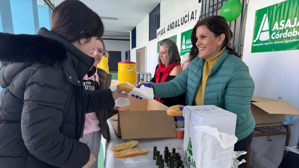 Unos 32.000 escolares de Córdoba y su provincia están celebrando esta semana el Día de Andalucía con desayunos molineros a base de pan con aceite de oliva virgen, gracias al convenio de colaboración entre ASAJA Córdoba y DCOOP, con el que ambas entidades impulsan la difusión de la cultura del aceite de oliva virgen ecológico.