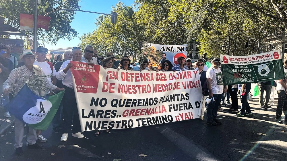 En la marcha estuvo presente la plataforma Stop Megaplantas Solares del Alto Guadalquivir, junto a otros colectivos de toda España que reclaman un modelo de transición energética “justo y sostenible”. Los manifestantes portaron pancartas con mensajes como “¡Placas no, olivos sí!” o “¡Especuladores fuera de mi tierra!”, expresando su rechazo a los proyectos de grandes plantas fotovoltaicas que afectan a zonas agrícolas productivas.